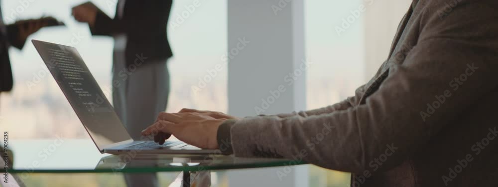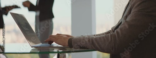 Wall mural programmer working in a software company office and typing a code. - Wall murals Wall mural programmer working in a software company office and typing a code. - Wall murals