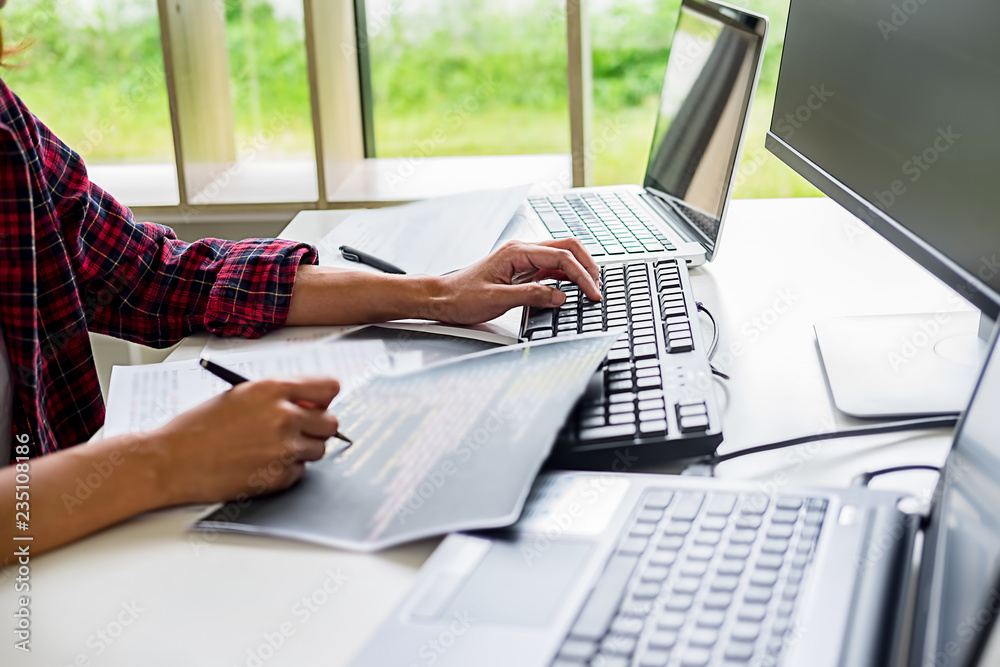 The watermark will not be included on Wall mural.: Programmer working in a software development and coding technologies - website design - technology conc