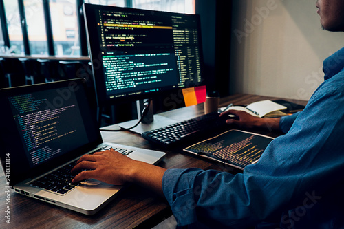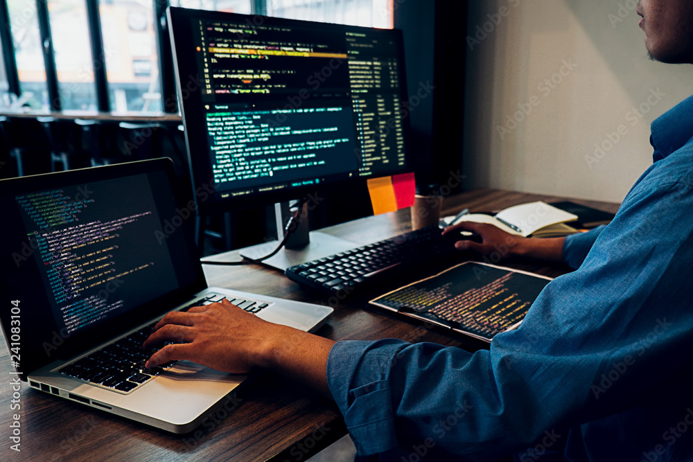 Wall mural : Programmer working in a software development and coding technologies - website design - technology conc