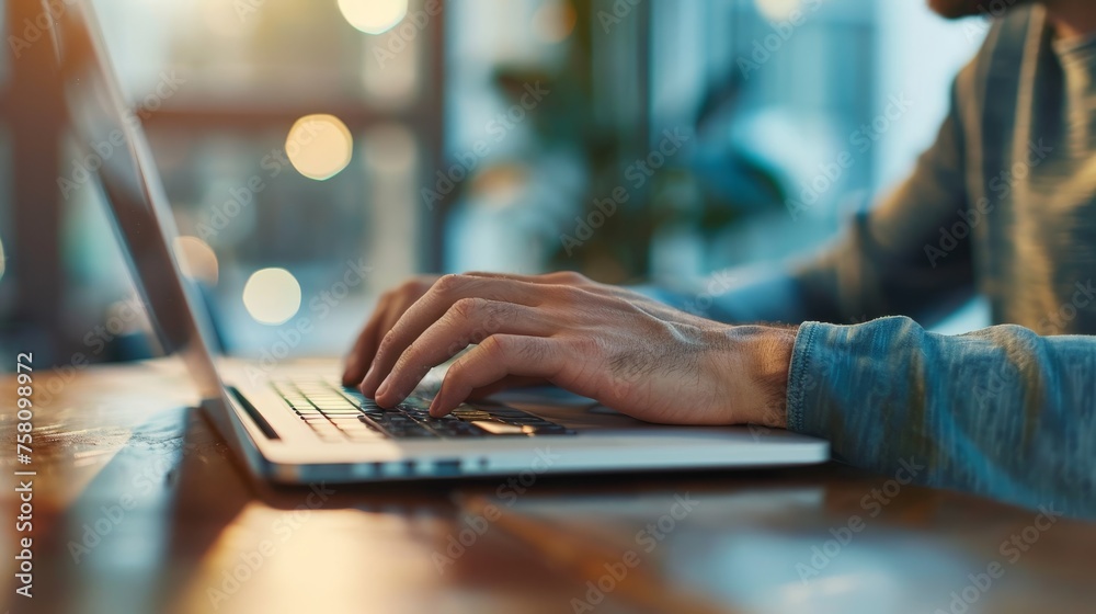 The watermark will not be included on Wall mural.: Programmer working on their professional development types on a laptop computer