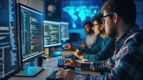 Wall mural : Programmer working with software development and data coding in office aig41