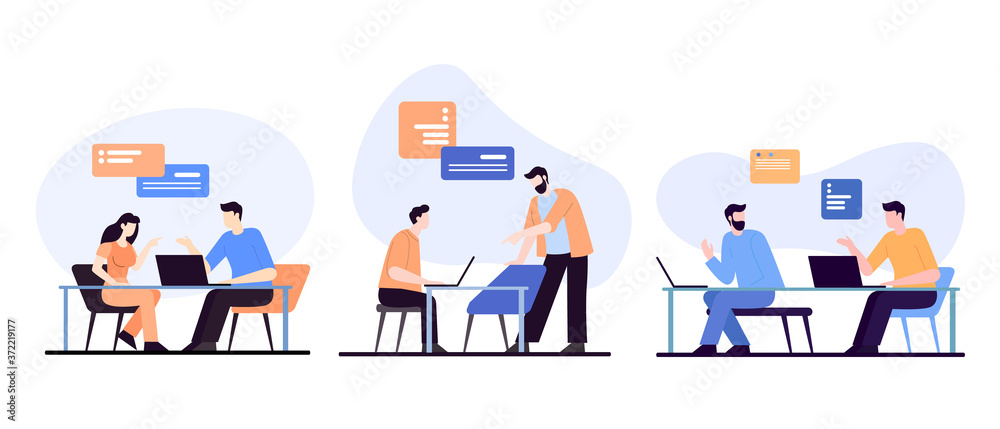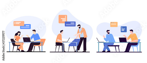 The watermark will not be included on Wall mural.: Programmers behind new project illustration - group of it specialists working on creation of company