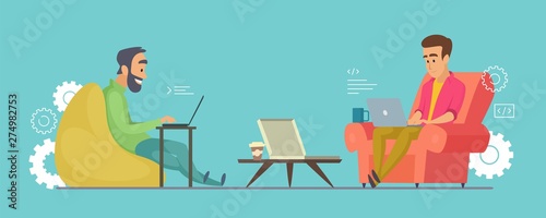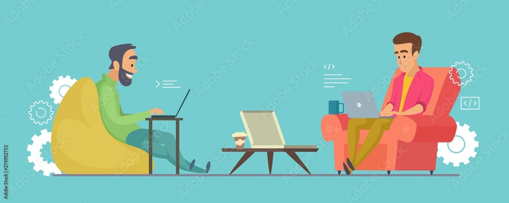 The watermark will not be included on Wall mural.: Programmers vector characters - software developers working on laptops in coworking illustration - pro