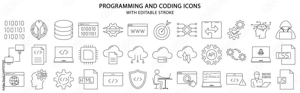 Wall mural programming and coding icons. set icon about programming and coding. programming and coding line ico - Wall murals Wall mural programming and coding icons. set icon about programming and coding. programming and coding line ico - Wall murals