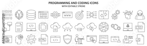 Wall mural : Programming and coding icons - set icon about programming and coding - programming and coding line ico