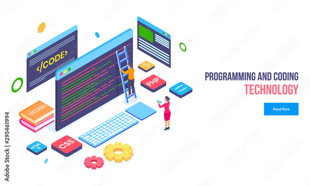 Wall mural programming and coding technology concept, miniature programmer fixing the problem, website under ma - Wall murals Wall mural programming and coding technology concept, miniature programmer fixing the problem, website under ma - Wall murals