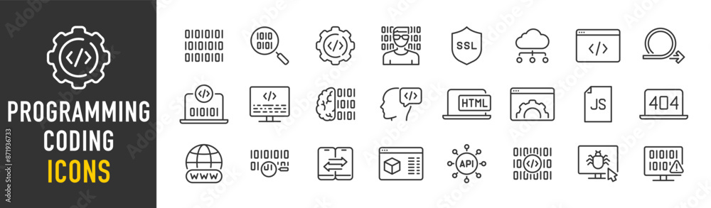 Wall mural programming and coding web icons in line style. software, development, legal, cloud computing, progr - Wall murals Wall mural programming and coding web icons in line style. software, development, legal, cloud computing, progr - Wall murals