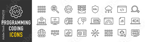 Wall mural : Programming and coding web icons in line style - software, development, legal, cloud computing, progr