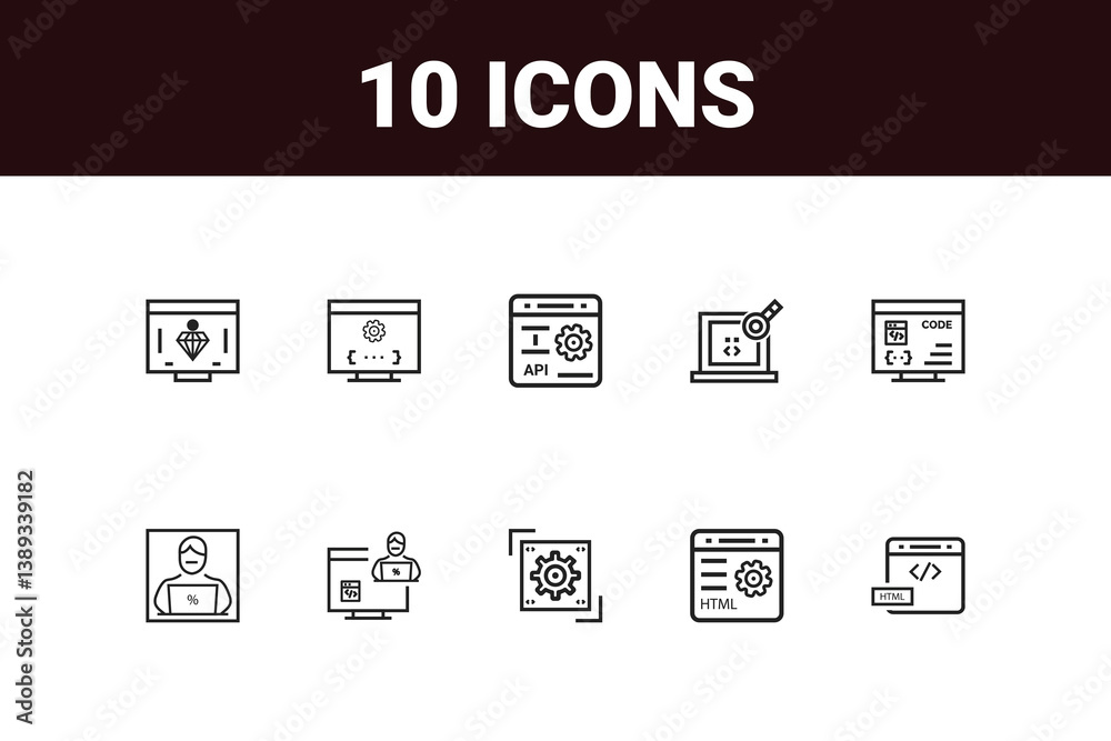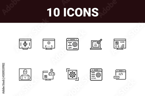 The watermark will not be included on Wall mural.: Programming coding set of web icons in line style - software development icons for web and mobile app