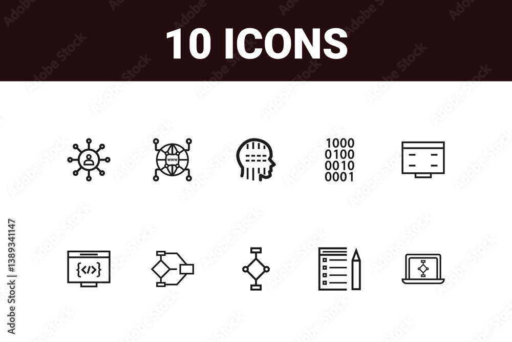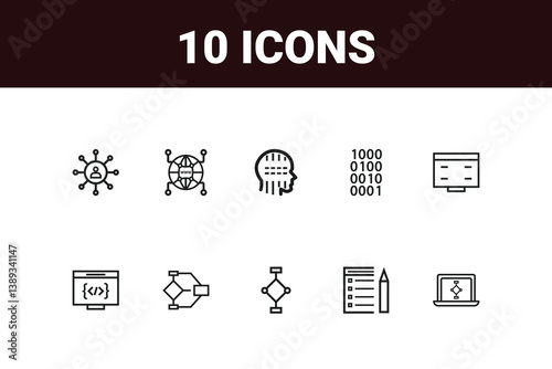 The watermark will not be included on Wall mural.: Programming coding set of web icons in line style - software development icons for web and mobile app