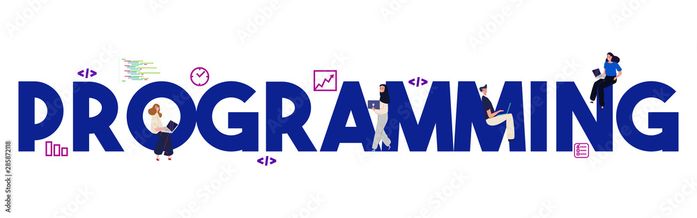 Programming computer code development illustration concept of coder software web developer programmeWall mural