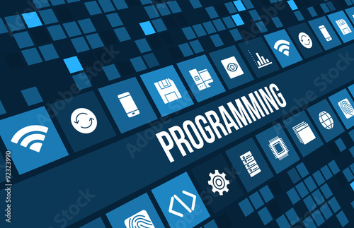 The watermark will not be included on Wall mural.: Programming concept image with technology icons and copyspace