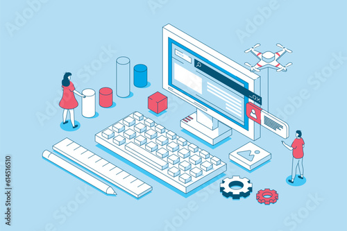 Wall mural programming concept in 3d isometric design. people working with code or script, creating software, p - Wall murals Wall mural programming concept in 3d isometric design. people working with code or script, creating software, p - Wall murals