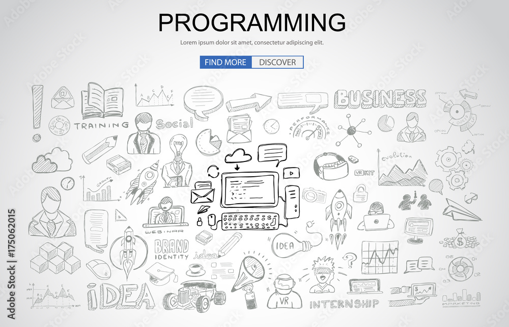 Wall mural programming concept with business doodle design style: online resources, coding skills, elearning ti - Wall murals Wall mural programming concept with business doodle design style: online resources, coding skills, elearning ti - Wall murals
