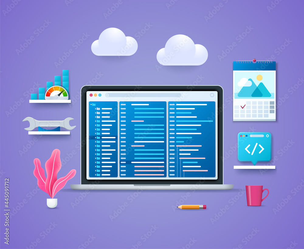 Wall mural programming concept. laptop with open programming language and program code window. web development  - Wall murals Wall mural programming concept. laptop with open programming language and program code window. web development - Wall murals