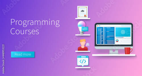 The watermark will not be included on Wall mural.: Programming courses banner in 3d style