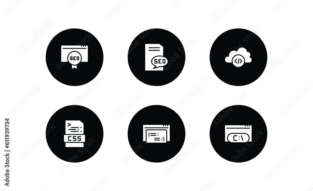 Wall mural : Programming filled icons set - programming filled icons pack included seo ranking, seo report, cloud