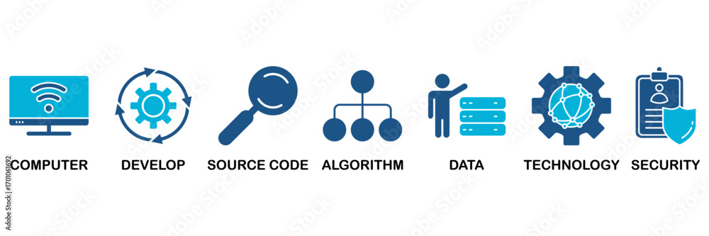 Wall mural programming icon set in blue monochrome flat design, vector illustration concept relate to icon of c - Wall murals Wall mural programming icon set in blue monochrome flat design, vector illustration concept relate to icon of c - Wall murals