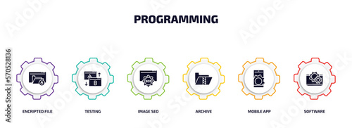 Wall mural : Programming infographic element with filled icons and 6 step or option - programming icons such as en