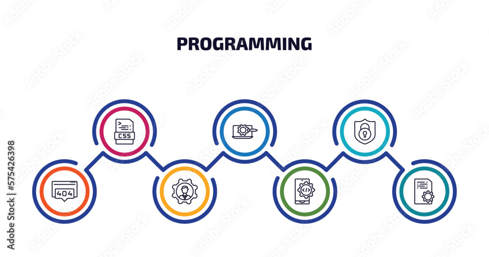 Wall mural : Programming infographic element with outline icons and 7 step or option - programming icons such as c