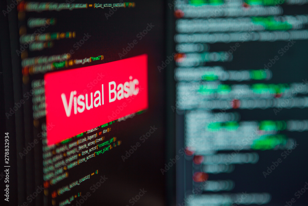 The watermark will not be included on Wall mural.: Programming language, visual basic inscription on the background of computer code -