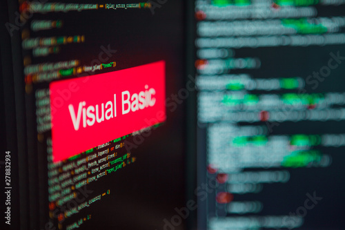 Wall mural : Programming language, visual basic inscription on the background of computer code -