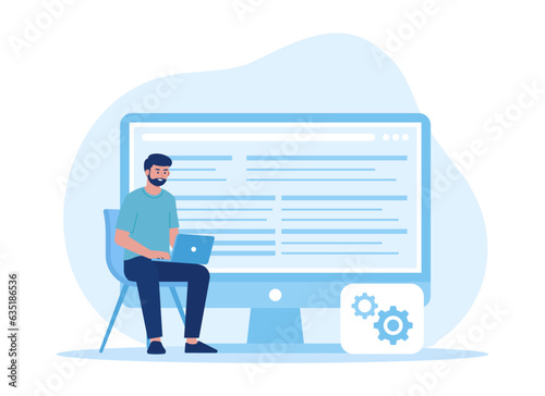 The watermark will not be included on Wall mural.: Programming language improvements, script writing concept flat illustration