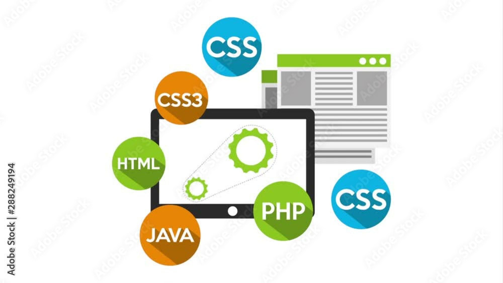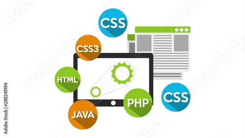 The watermark will not be included on Wall mural.: Programming language with tablet and icons animation