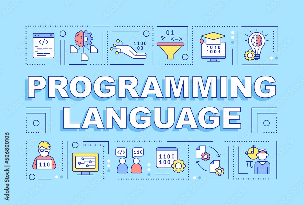 Wall mural programming language word concepts blue banner. computer commands. infographics with icons on color  - Wall murals Wall mural programming language word concepts blue banner. computer commands. infographics with icons on color - Wall murals