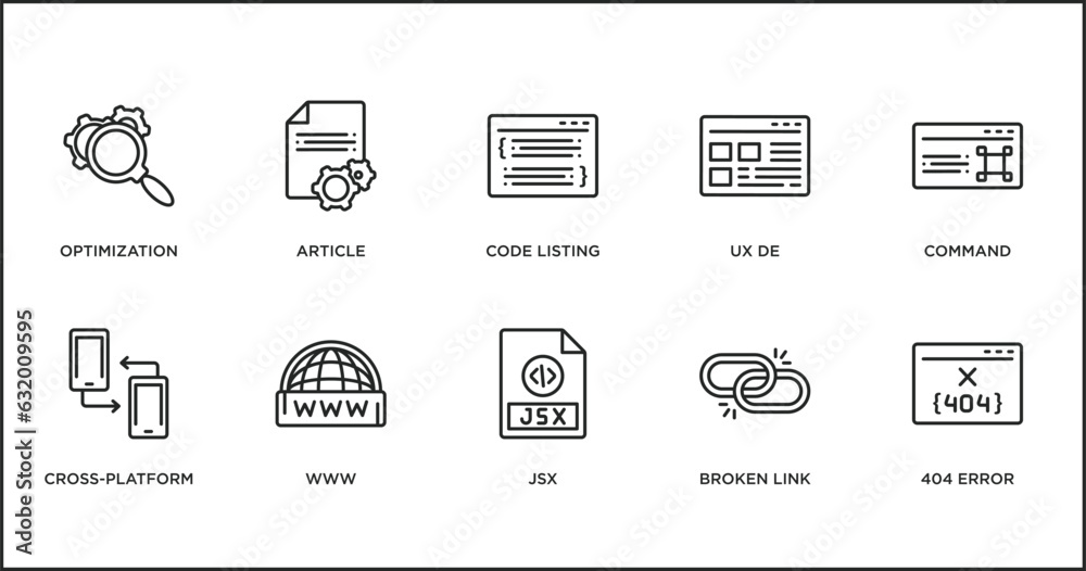 Wall mural : Programming outline icons set - thin line icons such as code listing, ux de, command, cross-platform,