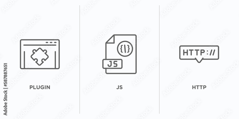 The watermark will not be included on Wall mural.: Programming outline icons set - thin line icons such as plugin, js, http vector - linear icon sheet ca
