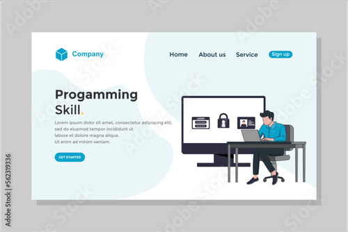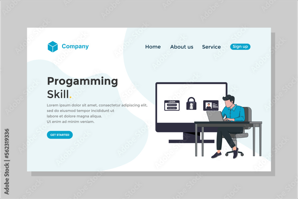 Programming skill concept, web engineer at work, vector images - programming unique illustration web Wall mural