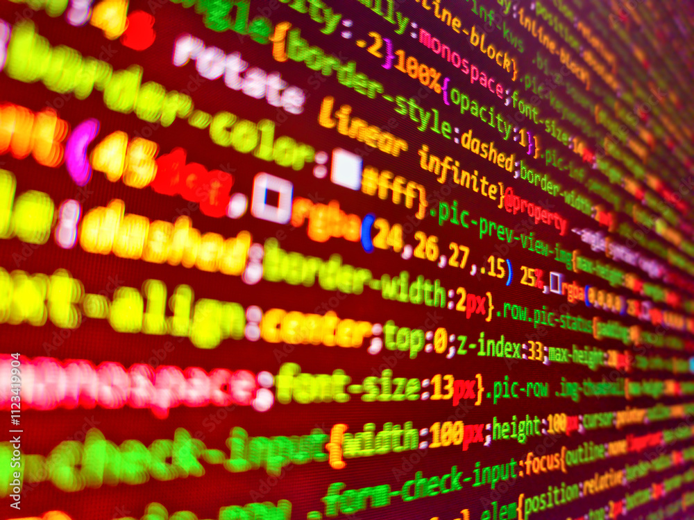 The watermark will not be included on Wall mural.: Programming software code on computer screen which develop by the programmer to solve the business r