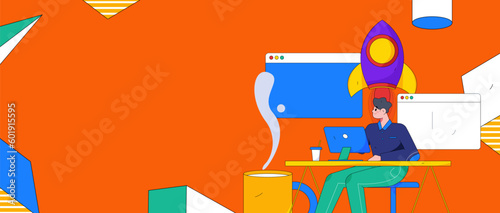 Wall mural programming teaching development flat character vector concept operation hand drawn illustration - Wall murals Wall mural programming teaching development flat character vector concept operation hand drawn illustration - Wall murals