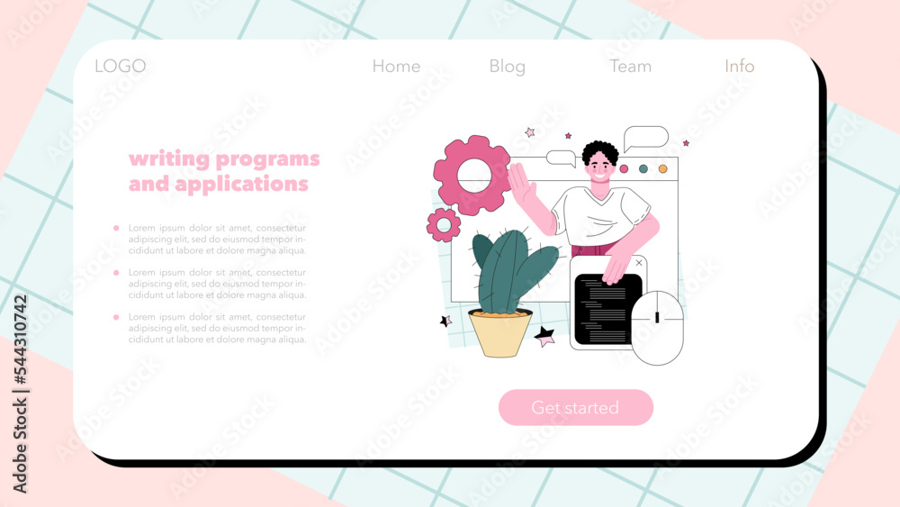 The watermark will not be included on Wall mural.: Programming web banner or landing page - idea of coding, testing