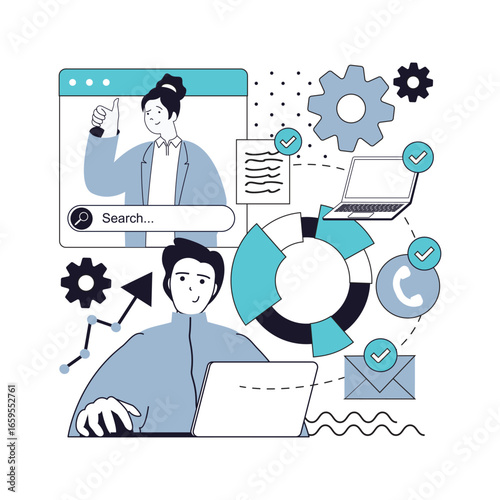 Wall mural project management concept for modern web design. people brainstorming, creating success strategy, w - Wall murals Wall mural project management concept for modern web design. people brainstorming, creating success strategy, w - Wall murals