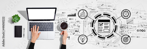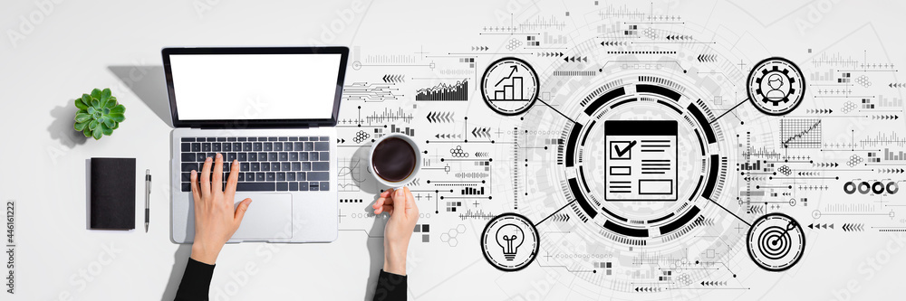 Wall mural project management theme with person using laptop computer - Wall murals Wall mural project management theme with person using laptop computer - Wall murals