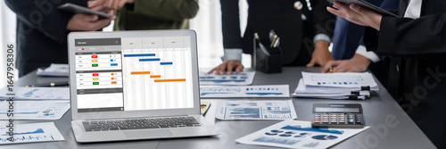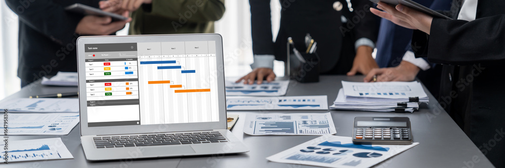 Wall mural : Project planning software for brisk business project management on the computer screen showing timel