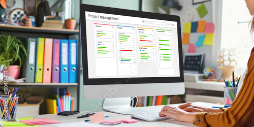 Wall mural project planning software for brisk business project management on the computer screen showing timel - Wall murals Wall mural project planning software for brisk business project management on the computer screen showing timel - Wall murals