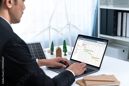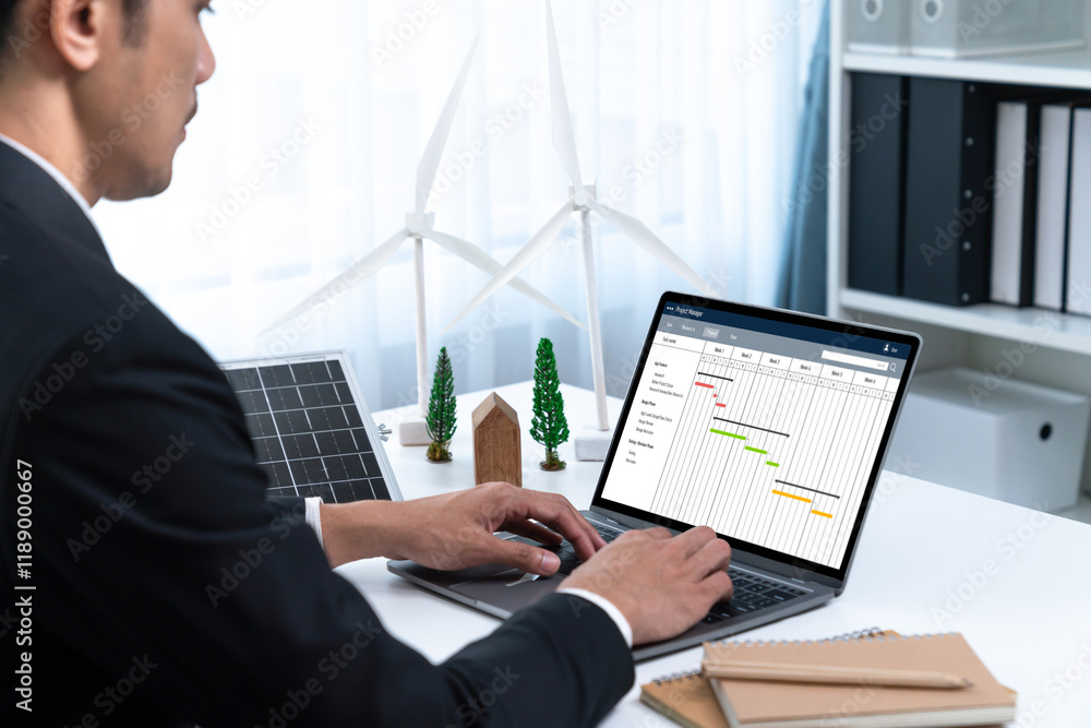 The watermark will not be included on Wall mural.: Project planning software for brisk business project management on the computer screen showing timel
