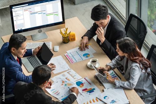 The watermark will not be included on Wall mural.: Project planning software for modish business project management on the computer screen showing time