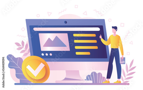 Wall mural : Promotion of website - man next to page on internet, interface for programs and applications - graphic