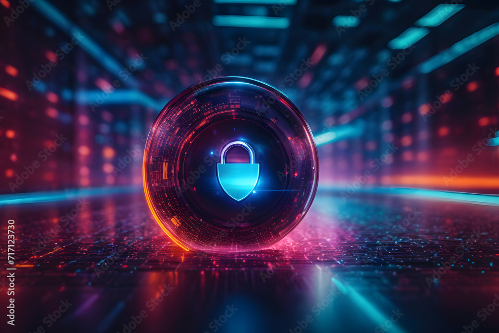 Wall mural protection shield with binary code on grey background. data security concept. generative ai - Wall murals Wall mural protection shield with binary code on grey background. data security concept. generative ai - Wall murals