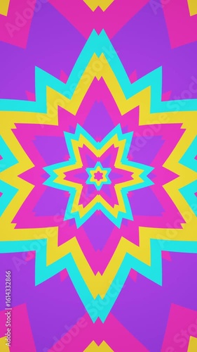 The watermark will not be included on Wall mural.: Psychedelic striped concentric star shapes expanding background loop