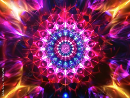 Wall mural psychedelic swirling mandala artwork with vibrant neon colors kaleidoscopic patterns creating mesmer - Wall murals Wall mural psychedelic swirling mandala artwork with vibrant neon colors kaleidoscopic patterns creating mesmer - Wall murals