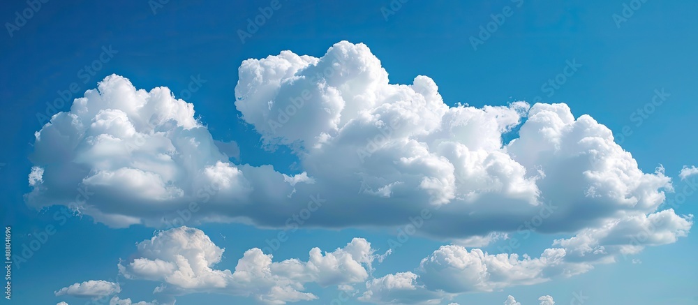 The watermark will not be included on Wall mural.: Puffy white clouds floating in a clear blue sky with ample copy space image