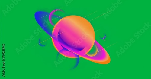 Wall mural pulses initiating ring tilting planet rotating satellite emerging, nebula pulsing for cosmic dance