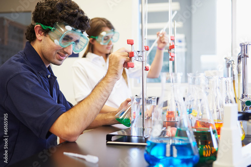 The watermark will not be included on Wall mural.: Pupils carrying out experiment in science class