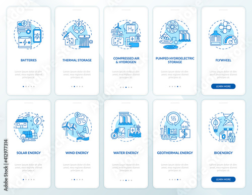 Wall mural : Purchasing solar energy system onboarding mobile app page screen with concepts set - wind and water e
