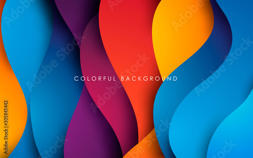 Wall mural purple, orange, yellow and blue fluid color background. dynamic textured geometric element. modern g